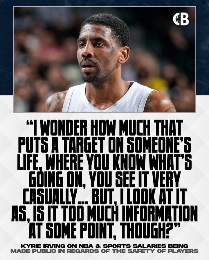 直播吧08月15日讯 今日,独行侠后卫凯里-欧文就公开NBA及体育运动员的薪资对球员安全造成的影响发表了个人看法。