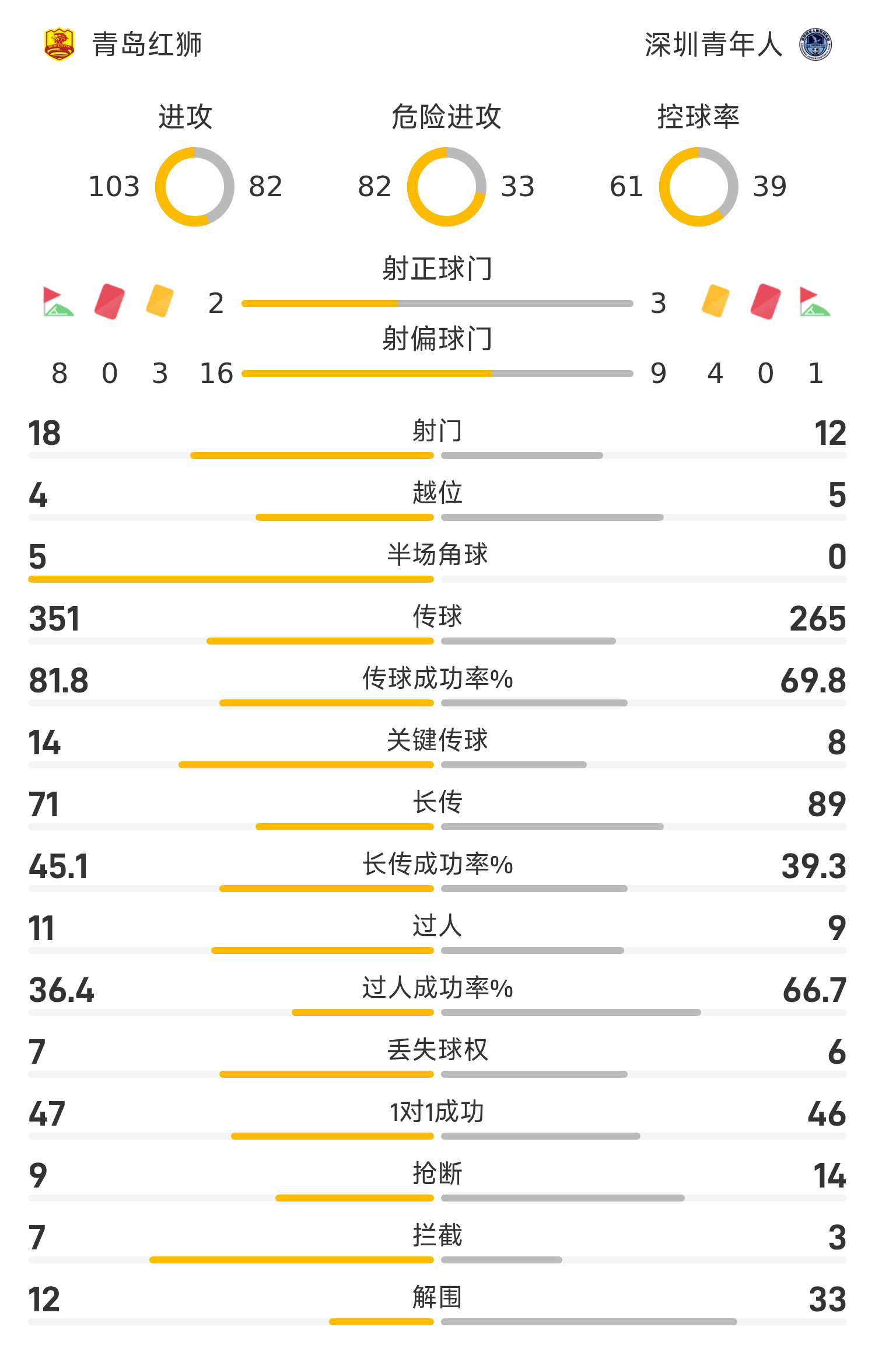 青岛红狮首发阵容:18-李亚楠;20-聂傲双;16-张一轩;2-宋博为(71’8-贾晓琛);7-诺布雷加;23-张亮;15-郝昱丞(57’36-吕凯文);30-周建燚(72’22-布格拉汗);11-孙锡鹏;10-莱昂德罗;40-皮梓杨(57’24-宋润潼)