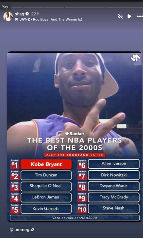 雷速体育9月2日讯 NBA名宿奥尼尔在社媒上转发了美媒排的21世纪前十年排名前10的NBA球员,他对这个排名表示认同。